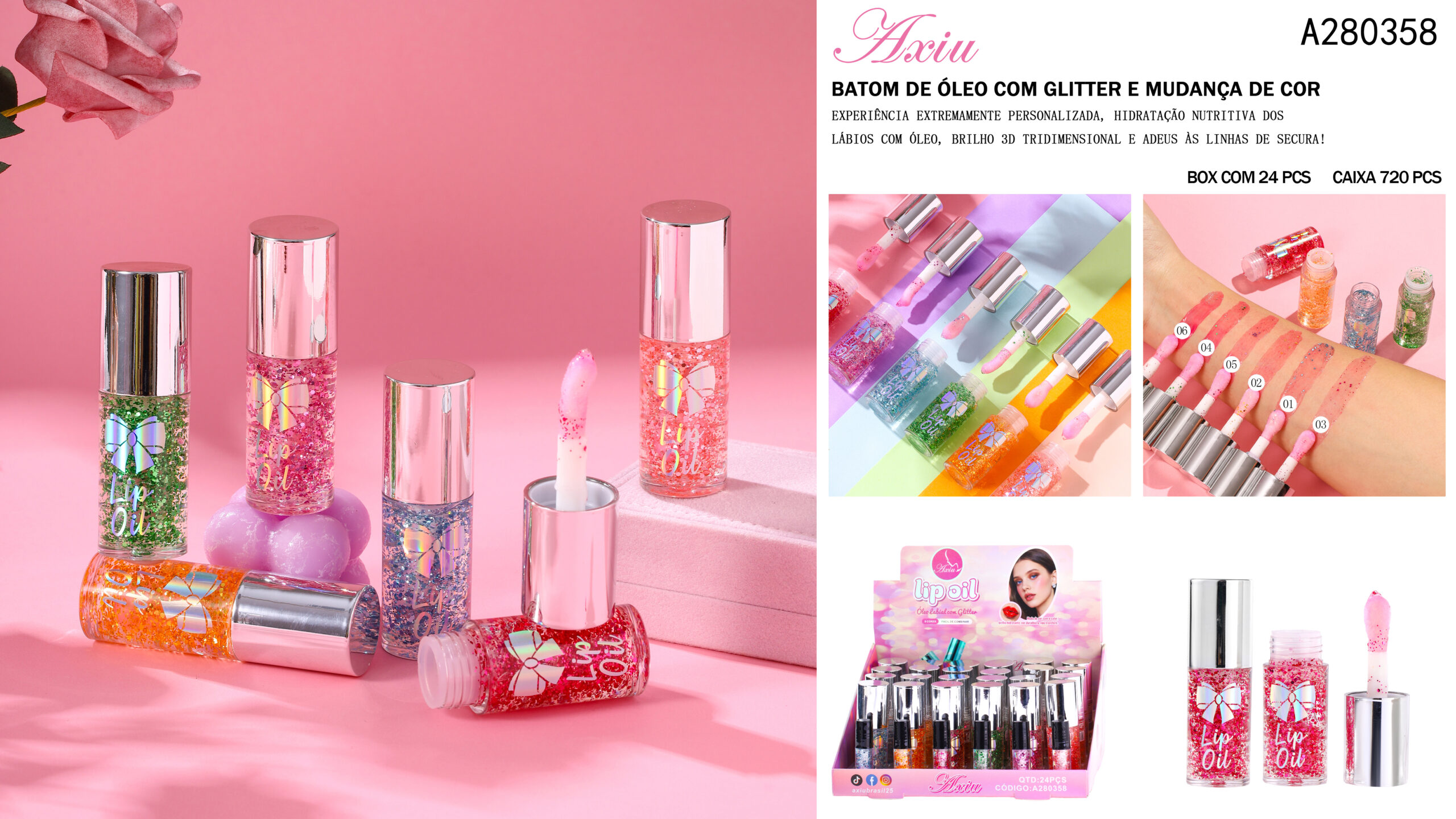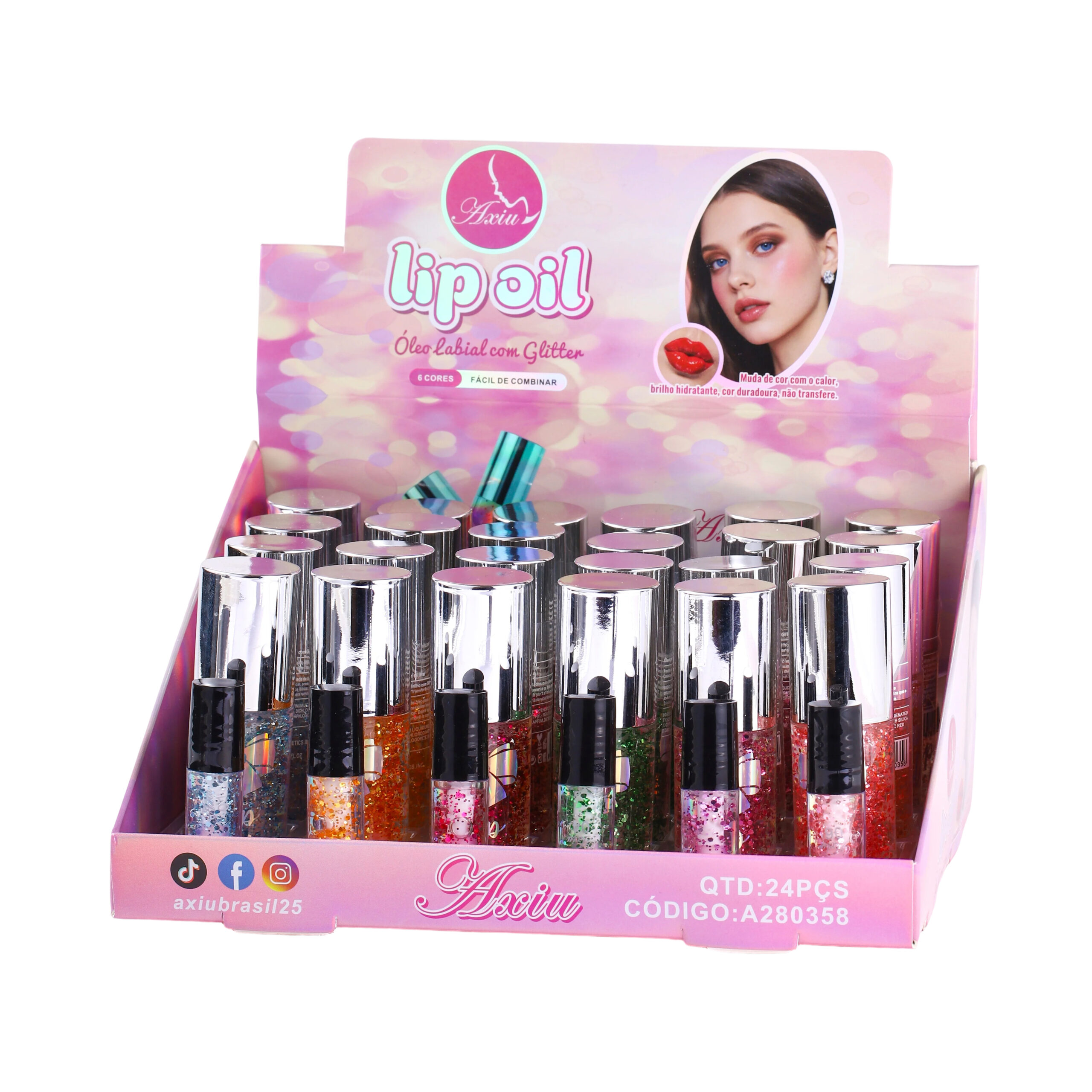 A280358-Batom de óleo com glitter e mudança de cor
