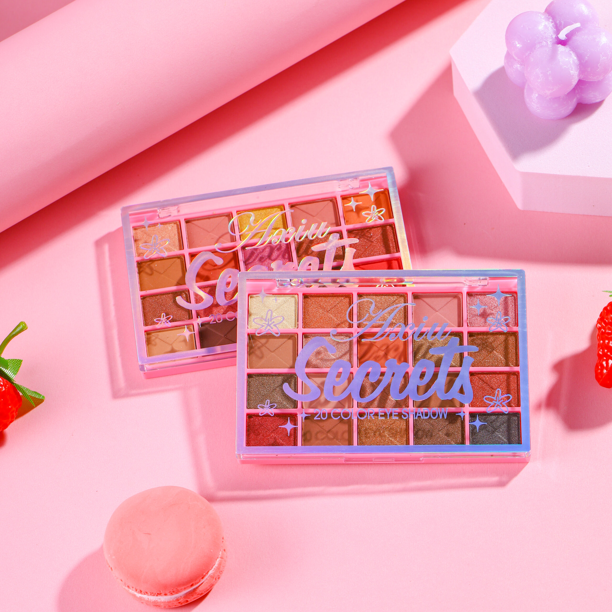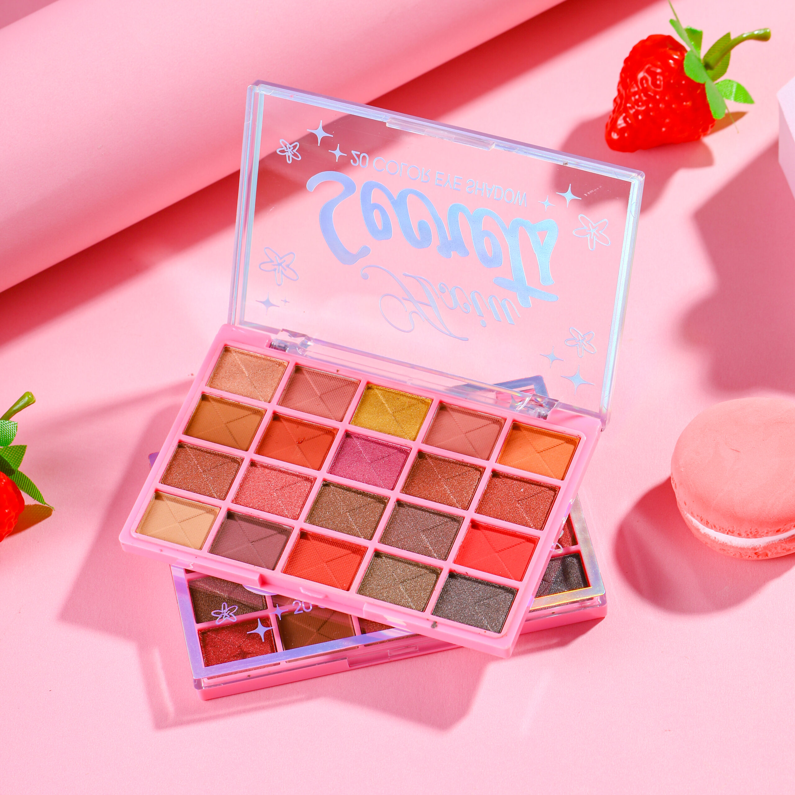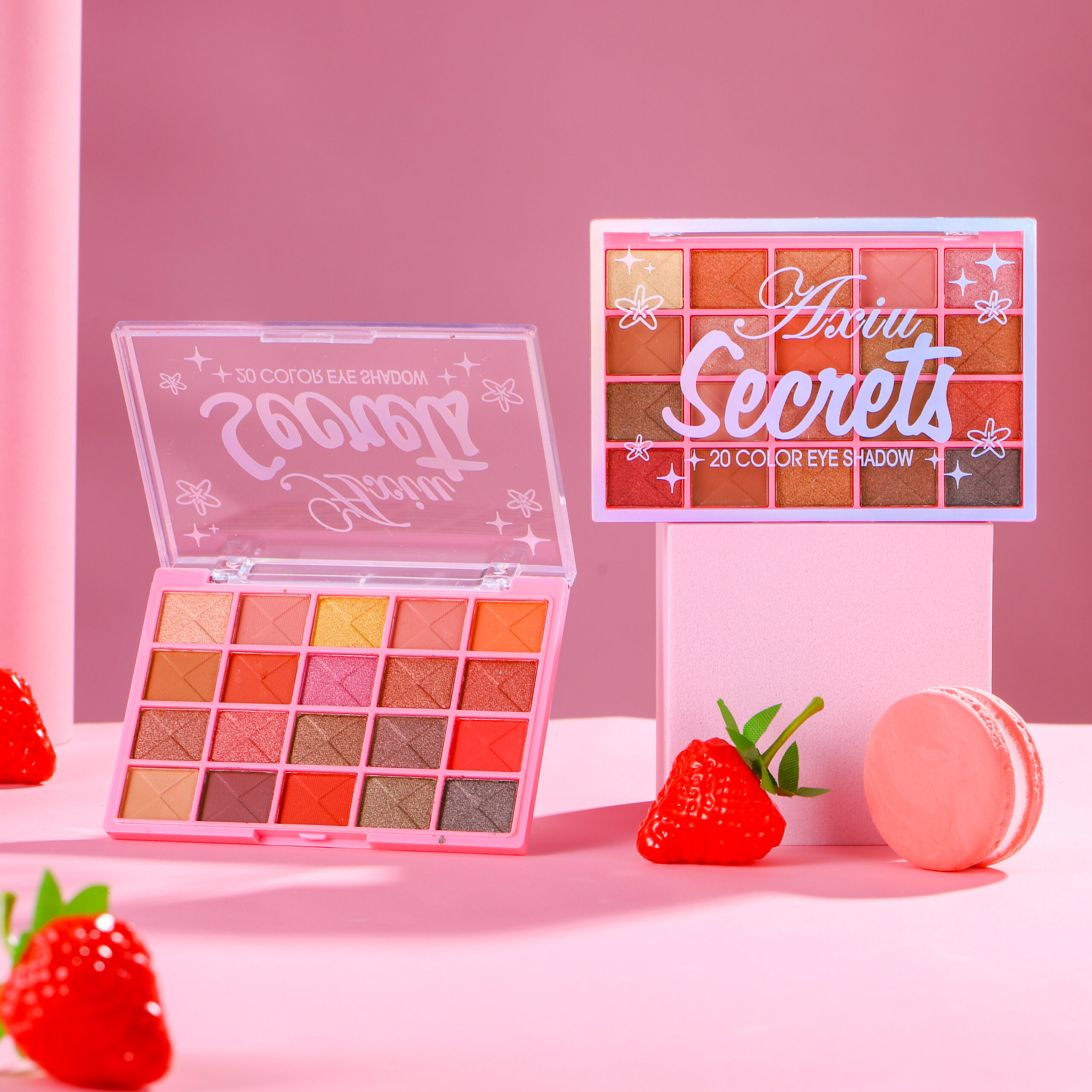 20 tons ricos, incluindo diversas texturas como matte, perlado e glitter. As cores vão desde tons nude suaves, laranja-pink cheio de vitalidade até vermelho-marrom profundo e azul-cinza frio, podendo criar diversos estilos de maquiagem de olhos como diária para trabalho, encontro romântico e personalidade de tendência.