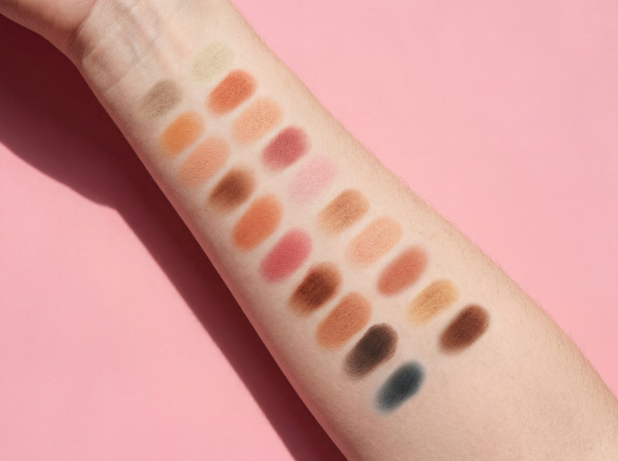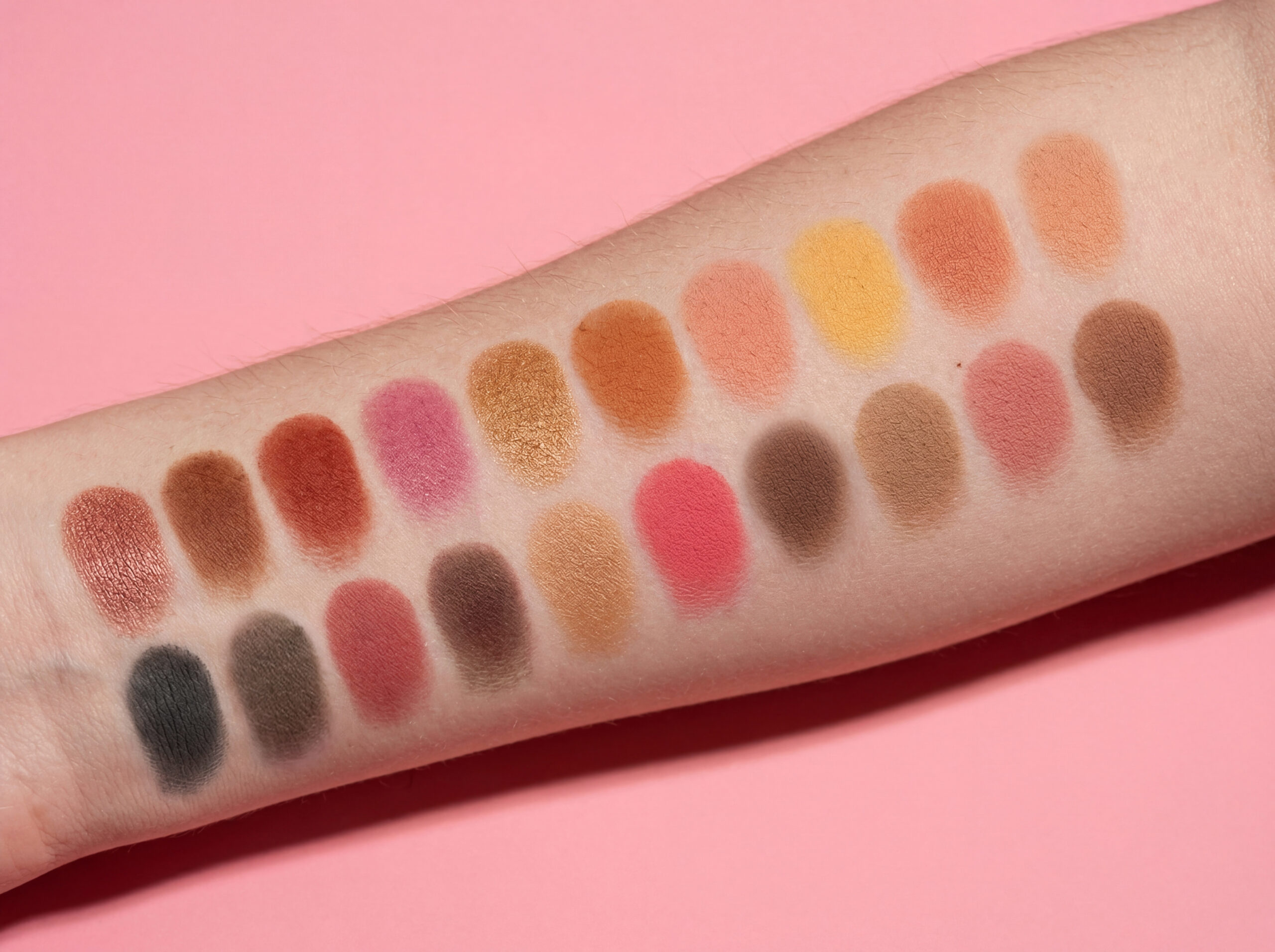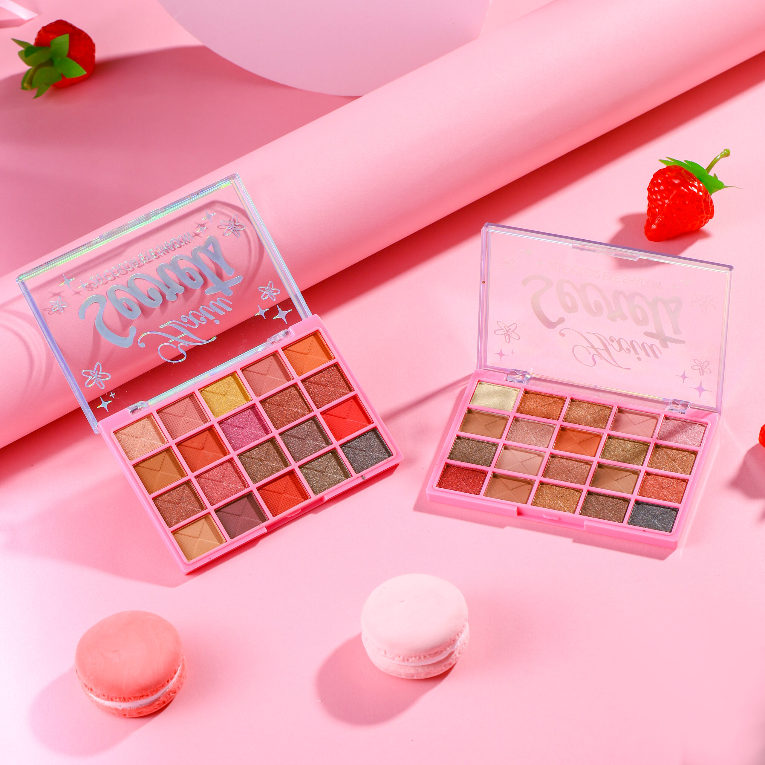 20 tons ricos, incluindo diversas texturas como matte, perlado e glitter. As cores vão desde tons nude suaves, laranja-pink cheio de vitalidade até vermelho-marrom profundo e azul-cinza frio, podendo criar diversos estilos de maquiagem de olhos como diária para trabalho, encontro romântico e personalidade de tendência.
