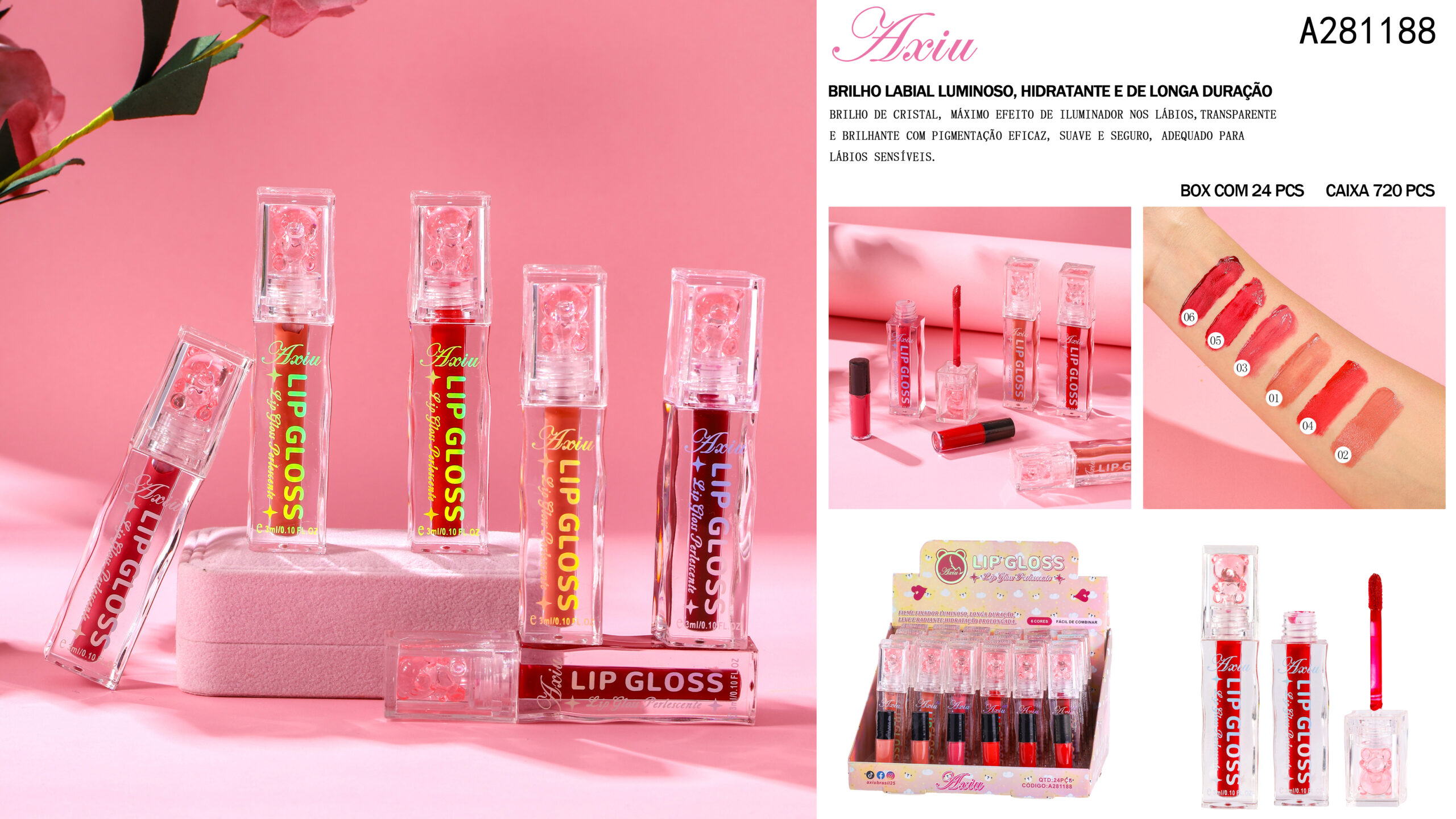 A281188-Brilho labial luminoso, hidratante e de longa duração