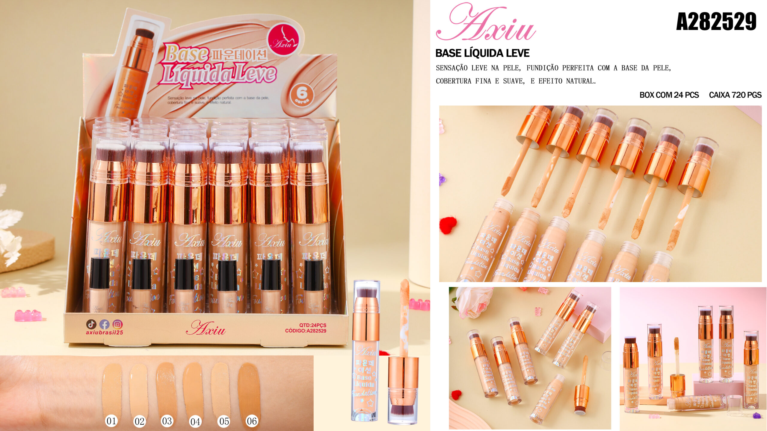 Sensação leve na pele, fundição perfeita com a base da pele, cobertura fina e suave, e efeito natural.