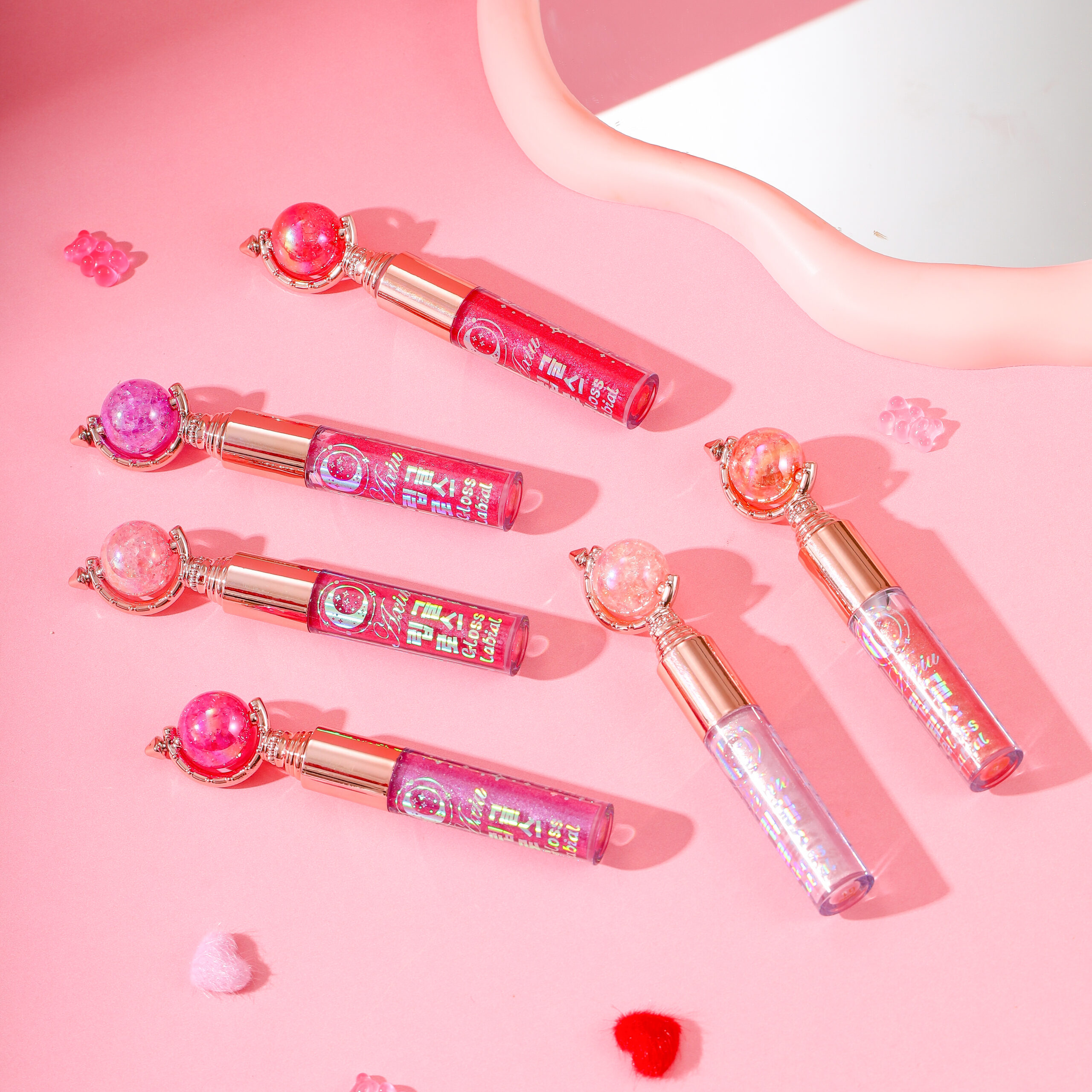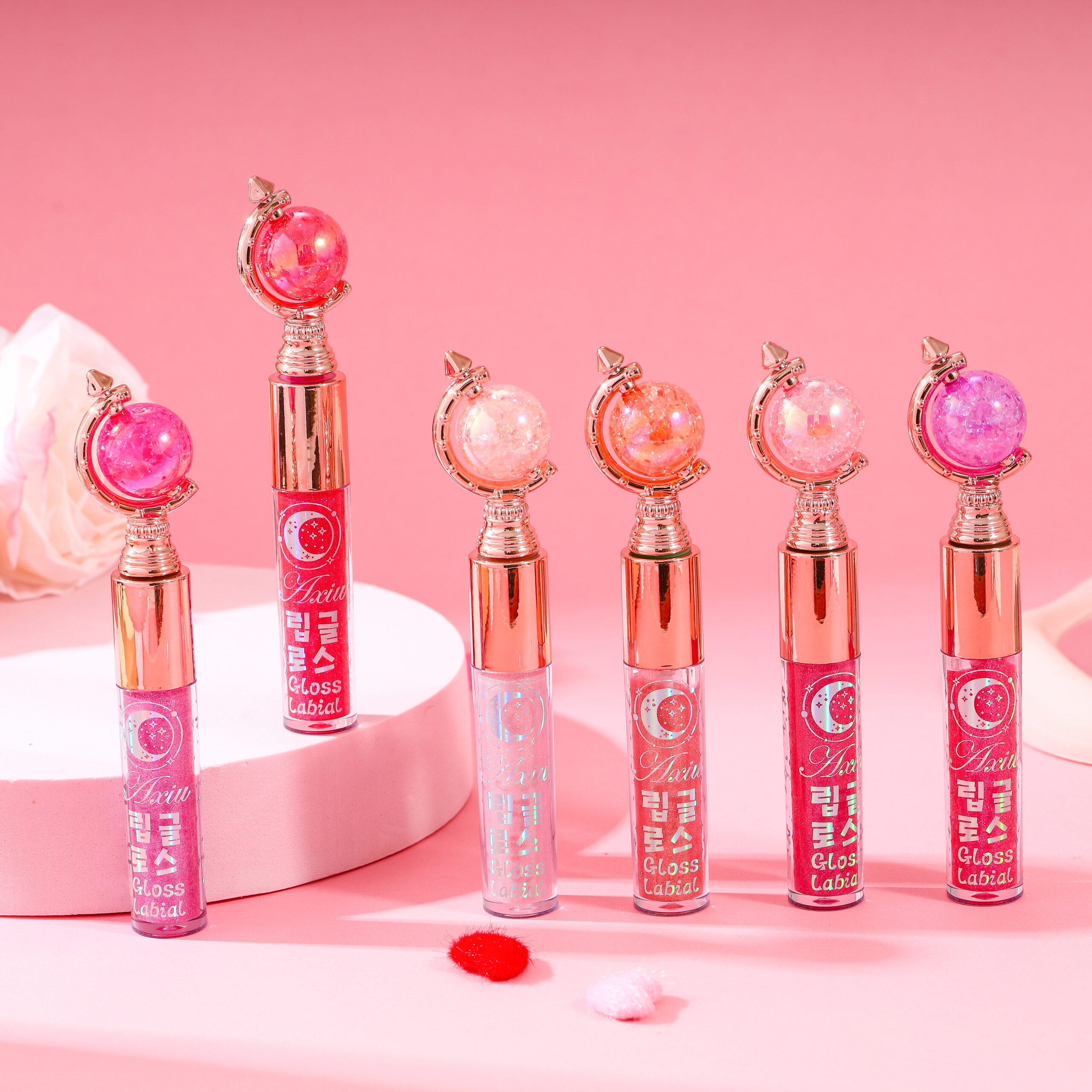 Dipe a cabeça do pincel em quantidade adequada de gloss e aplique uniformemente nos lábios. Aguarde a formação do filme, sobreponha pouco a pouco para obter um efeito de lábios cheios e translúcidos.
